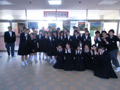 ここでは、最後の文化祭となる3年生の各クラスの集合写真と展示発表の一部を公開したいと思います。