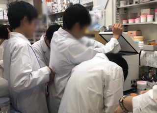 「サクラ薬局」さんでは、計量器の使い方や、遠心分離機の使い方を学んでいました。