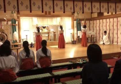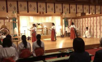 「住吉大社」さんでは、職場体験の3人が、舞を踊りました。