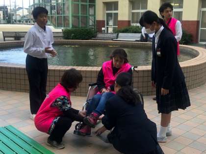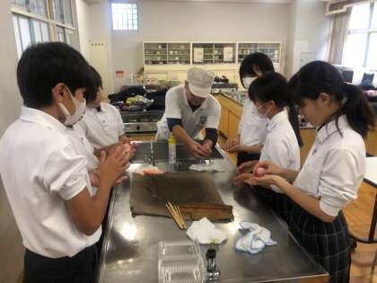公務員は、和歌山県南部役場の方に南高梅の農家からの収集から梅干しづくりまでのお話しと体験。介護福祉士は、車椅子体験。和菓子づくりは家庭科室であんを手で丸めて、木片の門脇で模様を入れる体験をしていました。真剣です。