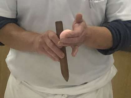 最後に鍼灸医さんの仕事のお話しと、和菓子の模様の入れ方です。手で優しく丁寧に作業をしなければいけません。いい学習を子どもたちは体験できました。