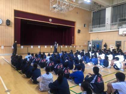 今日は部活動激励会を行いました。部活動所属の1・2年生が集まり活動報告をして、決起集会をしました。そのあと、教員チーム対2年生チームで試合をしました。先生と生徒の真剣勝負、テスト後の楽しいひと時でした。