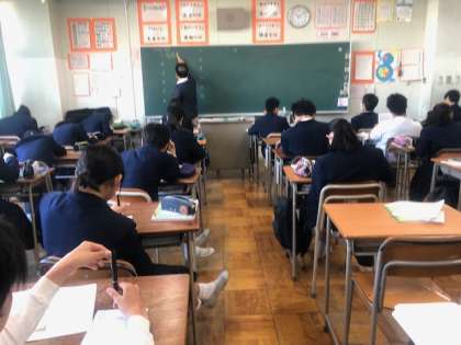 数学は平行四辺形の証明を楽しく学んでいます。英語はデジタル教科書でグループ学習、社会は幕末の内容でした。