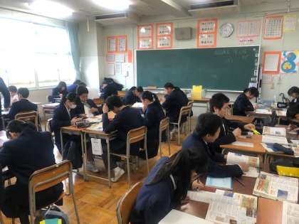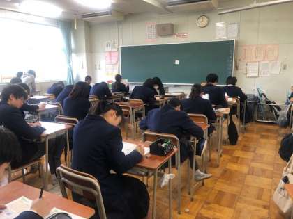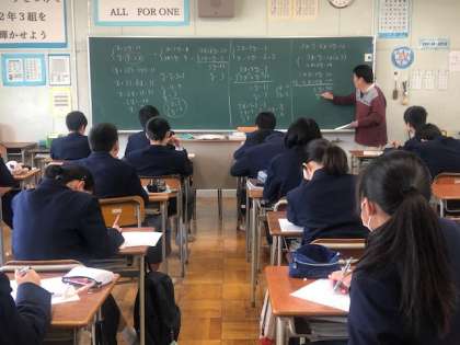 社会はグループで教え合い学び合い、数学は連立方程式の学習、英語は久しぶりにプロジェクターを使わずに個々で自分のペースで学習しています。3年生に向けて、自分の夢に向けて頑張ってほしいです。