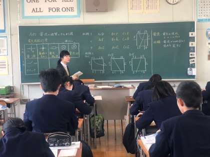 技術はパソコンのキーボード入力とインターネット検索でマルチメディアの作品づくりに取り組んでいます。理科は電気回路の記号のていねいな説明をしっかり聞いていました。数学は平行四辺形の証明の学習を先生の語りを聞きながら進めていました。