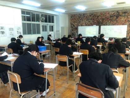 美術はデッサンと着色に真剣に作業をしています。英語はオリビアの楽しいトークのグループ学習、国語は「少年の日の思い出」を生徒たちの意見を出し合いながら進めていました。実にいいですね。