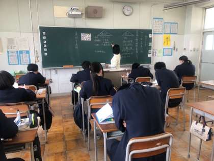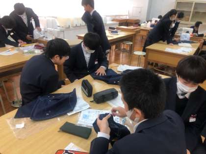家庭科はミシンを使った実習、理科は地震活動についての学習、国語は「少年の日の思い出」の学習をしています。どの学級も一生懸命です。