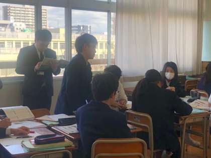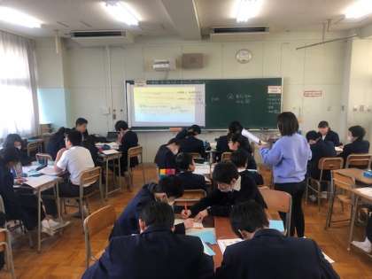英語の授業改善として、英語で表現することが重要なので、2人グループがいいのか、4人グループがいいのか、6ヶ月間試行錯誤しながら、先生が努力してこられた姿には頭が下がります。現在は4人グループが安定しており、両サイドを内に向けている工夫も感心しています。