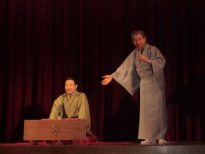 本日11月8日(土)3限目に元気アップ落語会が、体育館で行われました。3人の師匠が見えられ、古典落語・近代落語を披露していただきました。