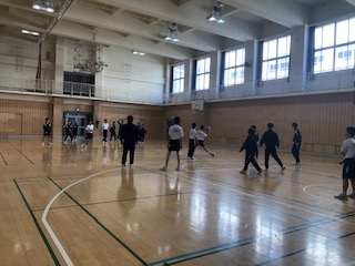 3月19日の球技大会に向けて、体育でドッチボールの練習をしています。1組は単学級での授業になりますが、白熱した試合を繰り広げています。