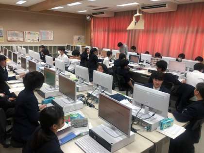 音楽は文楽の鑑賞、技術はパワーポイントを使った作品作りをしています。