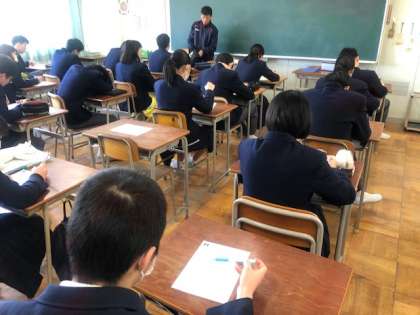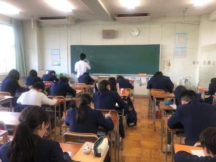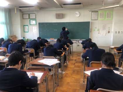 明日からいよいよ公立特別選抜の入試です。今日は3年生だけが6時間目まである日です。写真は社会と英語の授業の様子です。明日の受験はいい結果になるよう全力で頑張ってほしいです。