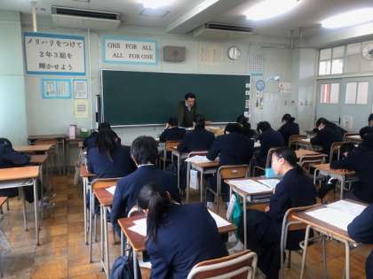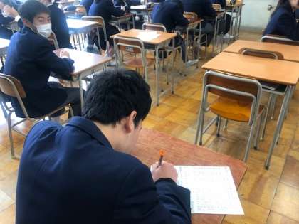 今日はそれぞれ学年末テストの解答の解説をしています。間違えたところをしっかりやり直して欲しいです。