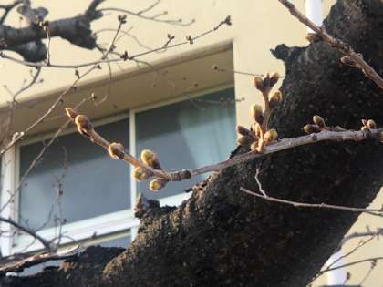 2年生の3教室と1年生4教室にプロジェクターを設置しました。少しずつICTの環境整備が進んでいます。最後にさくらのつぼみがもう開花間近です。