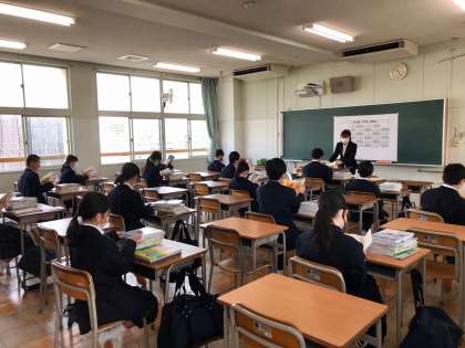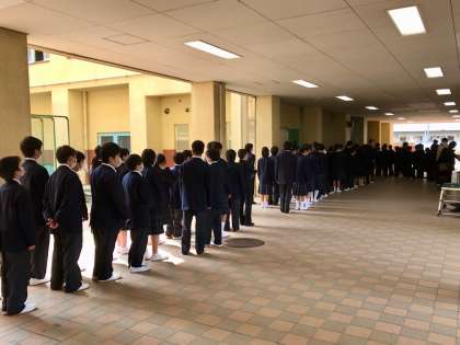 すごく緊張した面持ちで、しっかり担任の先生の指示を聞きながら、胸を張って入場します。ようこそ真住中学校へ。