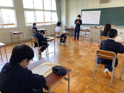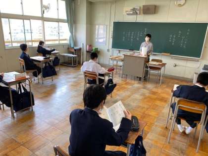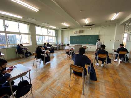 久しぶりに教室に生徒たちが戻ってきました。学校の復活です。1学級を3分割して11名程度で教室に座ってまずは宿題の提出から始めています。対面て先生と対話ができることが何よりです。静かに先生の指示に従って作業をしていました。