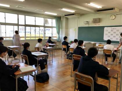 クラスごとに90分間、宿題の提出や課題の配布を行いましたが、どの生徒も最後まで集中して先生の話を聞いていたと思います。