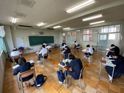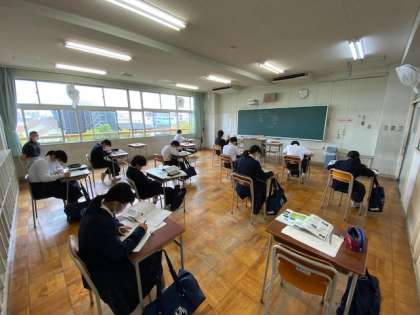 8時30分登校の第1グループです。教育相談と自習をセットで行っています。緊急事態宣言の学校休業中に発見したことや頑張っていること、不安やストレスなど、色々話ができたらいいですね。