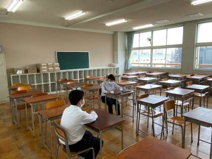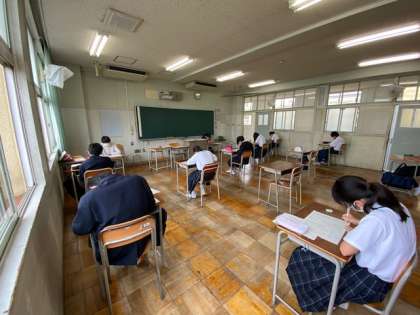 10時45分登校の第2グループです。教育相談を学級担任と進めながら、自習学習をしています。皆さん頑張っています。