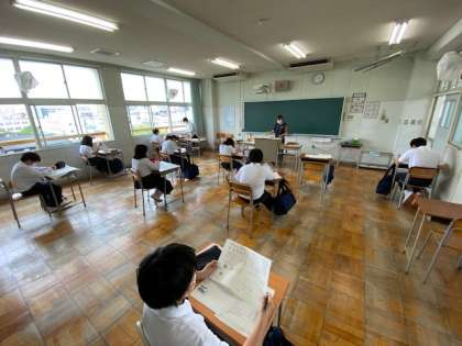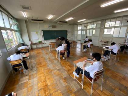 13時30分登校の第3グループです。次の登校日は28日です。来週からは人数が17名に増えます。徐々に授業開始になります。