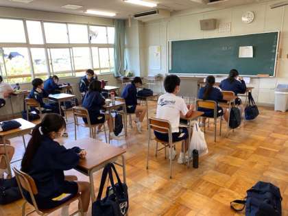 13時登校のB班です。身体測定をしながら自習学習です。男子体育の規律正しい授業を見て、いよいよ学校が始まるのだと実感しました。