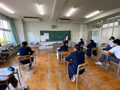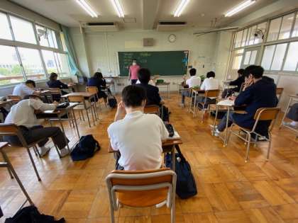 8時30分登校のA班です。理科、音楽、美術の授業です。