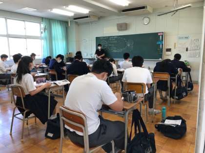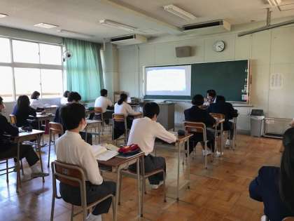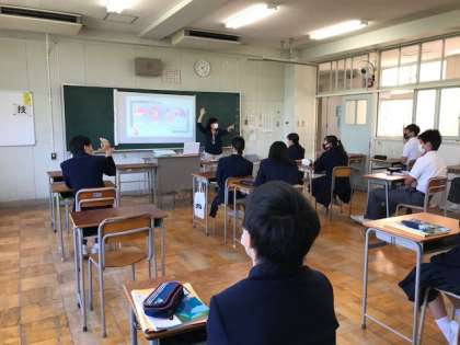 英語は、C-NETのRos先生の自己紹介の授業でした。クイズ形式で盛り上がっていました。Ros先生は全学年に授業をしますので、1.2年生のみなさんも楽しみにしていてください。