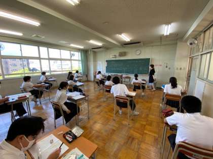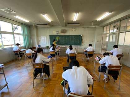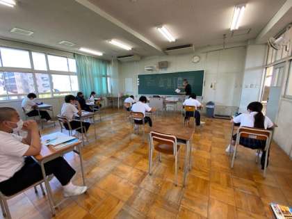 12時30 分登校のA班の授業です。数学、理科、国語の授業です。