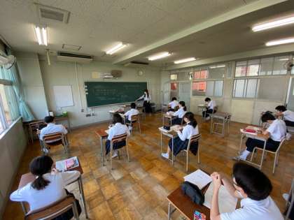 8時30分登校のB班の授業です。数学、英語、社会です。