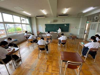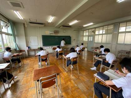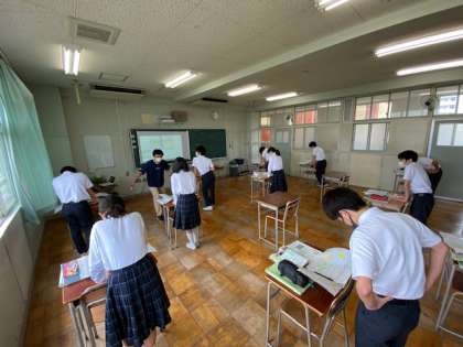 8時30分登校のB班です。美術、社会、音楽の授業です。
