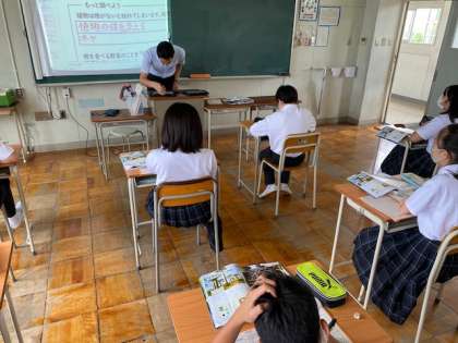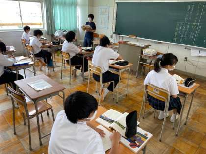 12時30分登校のA班の授業です。理科・国語・数学の授業です。
