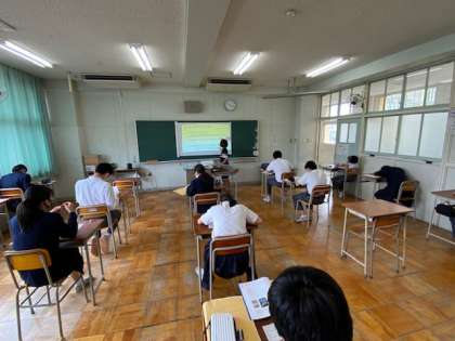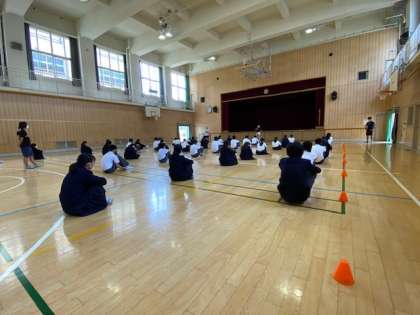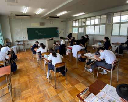8時30分登校のB班の授業です。学年集会・英語・家庭科の授業です。