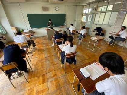 8時30分登校のB班です。数学、国語、英語の授業です。