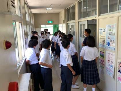 全員登校になり3日目です。3ヵ月休んでいたので、リズムを取り戻すのに時間をかけています。校舎見学して真住中学校のことを知っているところです。