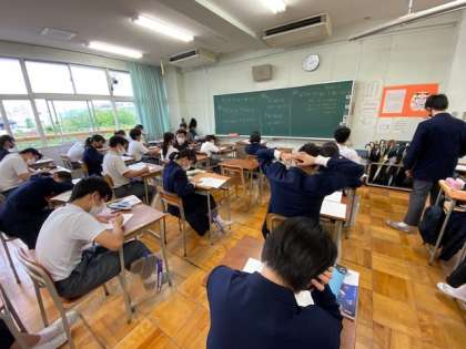3年生は来週から実力テストが7月初旬、中旬に2週間連続であります。また、下旬に期末テストがあります。今から1・2年生の復習をやりましょう。文科省からの通達で学習内容はいつもの8割になります。今は勉強する時です。