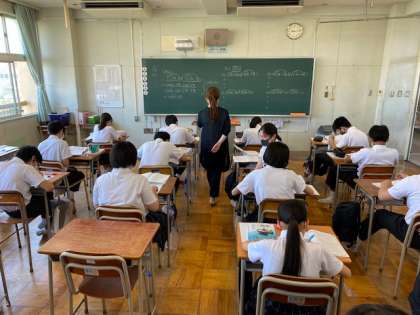 2年生の授業は、全員が集中して取り組めています。グループ学習をしたら、いい成果が出そうな感じがします。