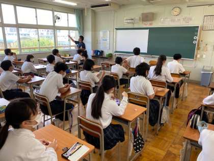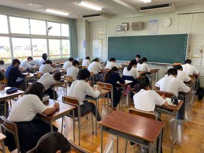 各学級ではアンケート調査をしています。また、12月にも同じアンケート調査をします。「人の役に立つ人間になりたい」とか「自分によいところがあるのか」「将来の夢や目標を持っているか」「ものごとを最後までやり遂げてうれしかった経験があるか」「失敗を恐れず挑戦しているか」「みんなで協力して取り組めたか」など、ひとり一人が学校生活や部活動の中で、どれだけ自己有用感の向上が達成できているか変化を調べます。12月に少しでもアンケート結果が向上するように、自分の「強み」であれば、例えば「走るのが速い」のなら、それを周りに認めてもらって初めてはじめて、その「強み」が活きてきます。人間はほめられて、認められて初めて、前向きになれます。ぜひ自分を知り、自分の「強み」と向き合って、自分探しをしてみてください。