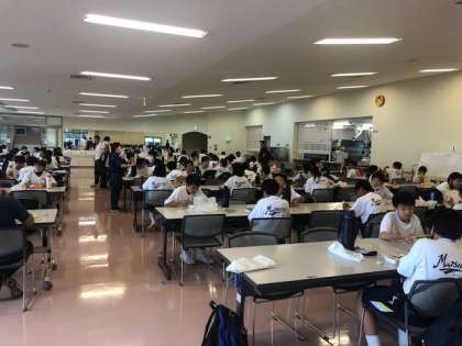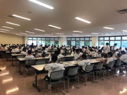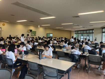 お互いの間隔を保って、昼食(お弁当)です。いただきます!