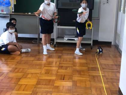 馬のひづめの形をしたパックを投げたりすべらしたりしてポールにはさまれば5ポイント、高得点です。普通の輪投げより難易度が高いです。