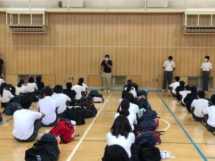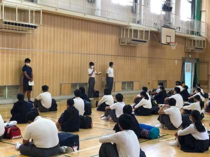 最後に学年主任藤田先生からとてもおだやかな優しい声で生徒みんなへ修学旅行での結束を語られました。