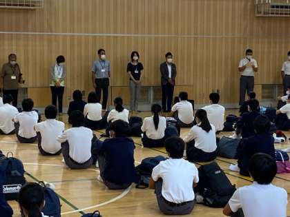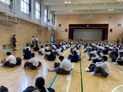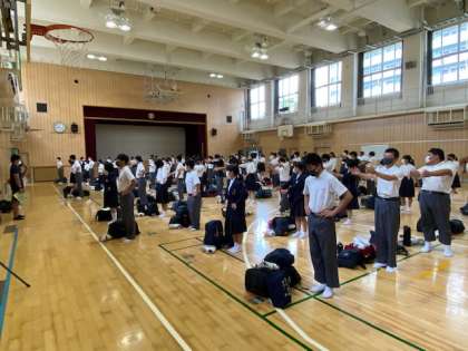 いよいよ修学旅行の始まりです。しっかり出発式で約束ごとを確認し、保護者の皆さまの願いをうけて、3日間想い出に残る修学旅行にします。では行ってきます
