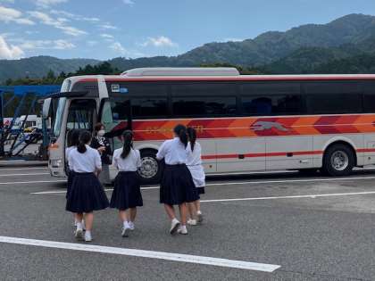 休憩中はバス換気をしています。バスの乗車の際はアルコール消毒をしています。