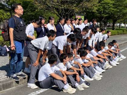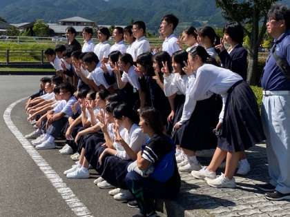 学級写真を撮りました。かなり暑いですが、笑顔です。