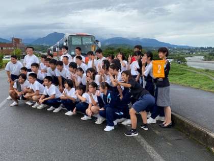 修学旅行 学級写真1組2組3組天竜川にて
