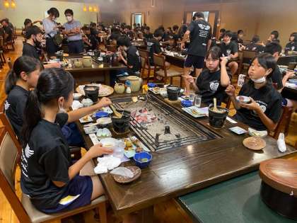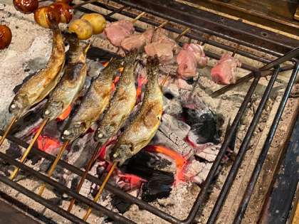 花菱名物炉端焼きを食べています。なかなか経験ができない食事です。