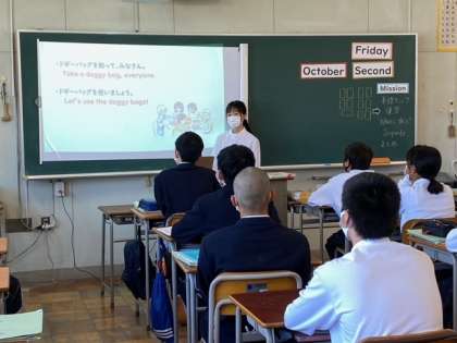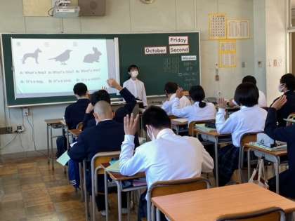 what is this?の文法を、グループで協議しながら、発表しています。楽しそうです。