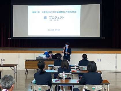 末村区長さまの東北での震災の様子を聞きながら、我が町住之江の防災リスクについて、大阪市立大学の先生からたくさん教えていただきました。これから6ヵ月の3月まで学習を続けます。住之江区の防災教育の始まりです。