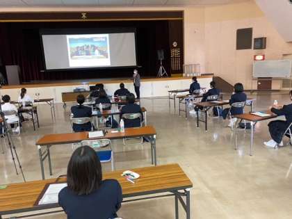 みんなに調べてほしいことを課題としていただきました。ご家庭でも話題にしてください。防災に必要な体力づくりも学びました。