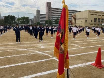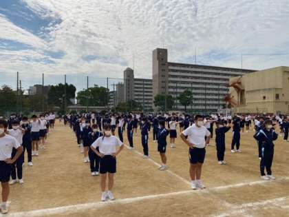 全校生徒はよく頑張りました。明後日いい体育大会になってくれると期待しています。規律を守ること、係の人中心に組織で動くこと、最後に全力で競技に挑むことを全員でやり切りましょう。スローガンは「喜びを力へと。」です。いい想い出にしてください。