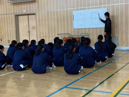 女子はバスケット、男子はサッカー、数学は証明の授業です。